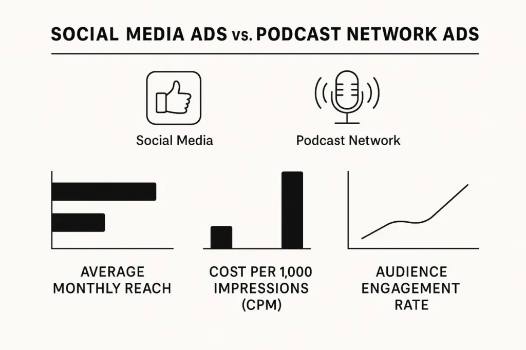 Cross-promotion removes the biggest hurdle in podcast advertising: you’re reaching people already in podcast mode. The average listener follows 3 to 5 podcasts. You’re not stealing audiences but adding to their rotation. Another host’s recommendation transfers their credibility to you and creates a warmer introduction than any solo promotion achieves.